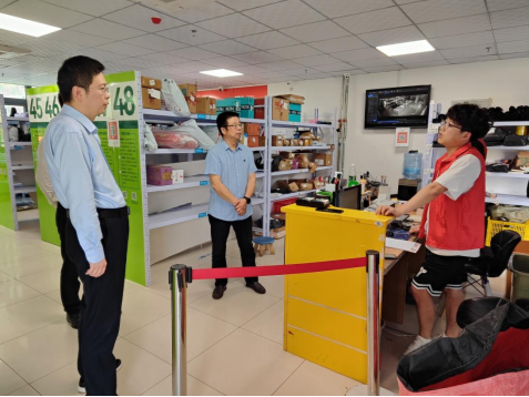 2023年5月30日,金沙城js93线路检测中心经理范坤、公司党总支书记肖渭两位领导亲临京东快递驿站(小蜜蜂)进行现场安全和运行情况大检查,了解京东快递驿站目前运营现状。